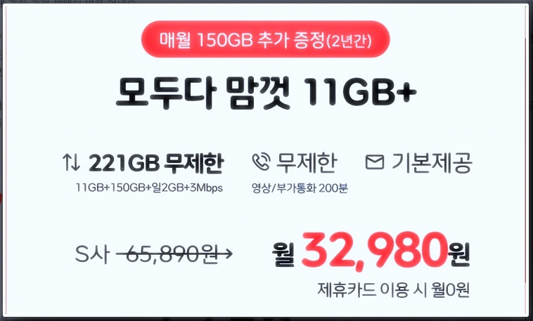 이것보다 더 저렴한 요금제를 찾으시는 분들은 아래 요금제를 사용하시면 됩니다.