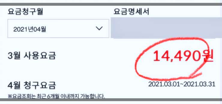 이게 KT알뜰폰으로 변경 후 요금입니다