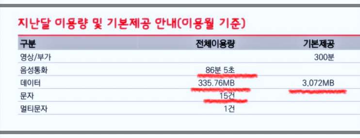 저 같은 경우에는 코로나 전에는 음성통화 100분 이상 데이터는 3기가 정도 사용했어요